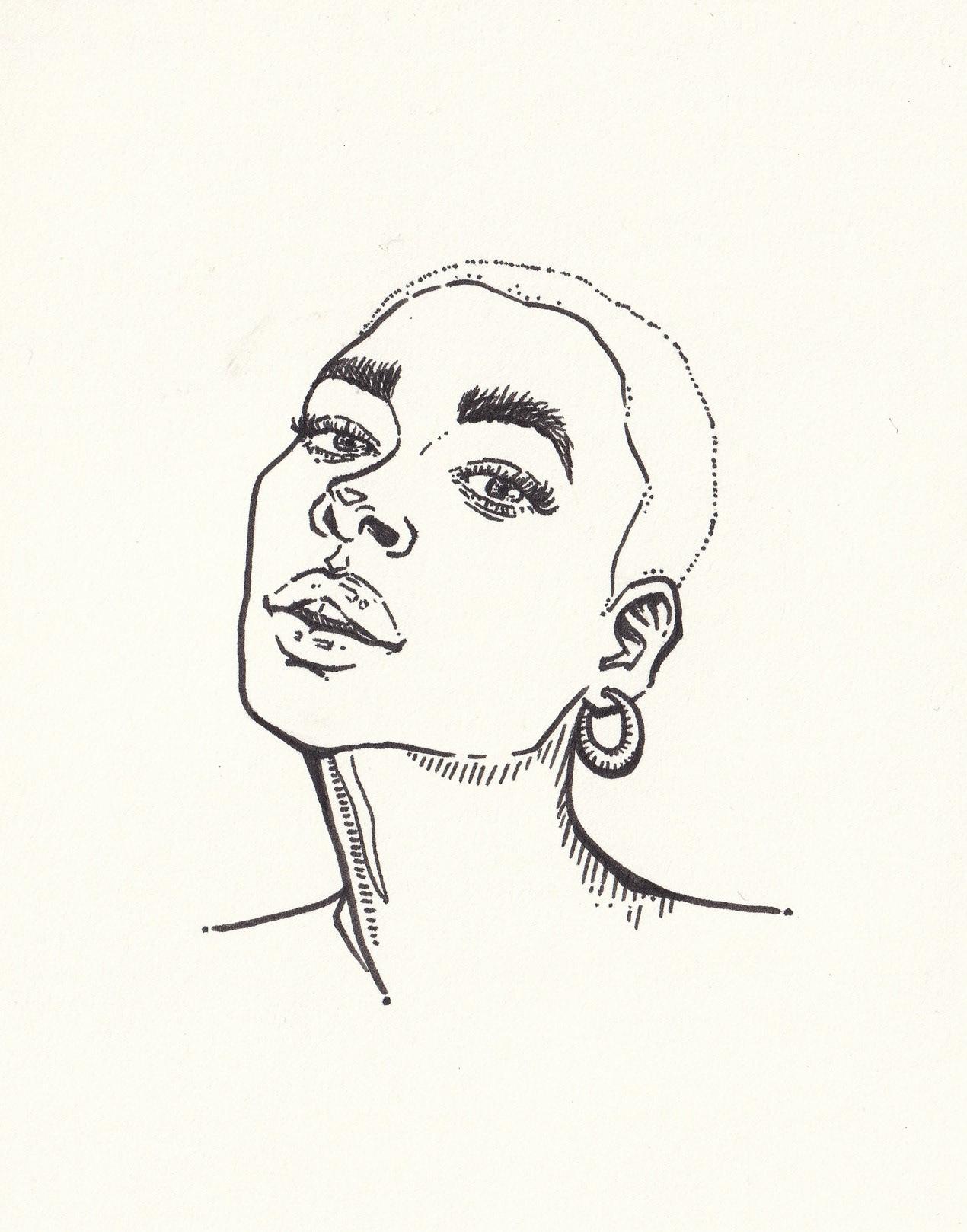 A triptych of portrait studies, created during warm-up exercises. All drawn using ink pens and fineliners.
